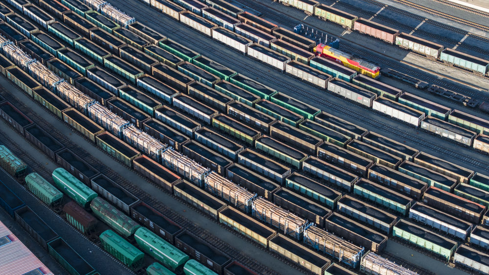 2025年10月18日,在中國鐵路哈爾濱局集團(tuán)有限公司綏芬河站南場,滿載進(jìn)口貨物的列車等待解體換裝(無人機(jī)照片)。新華社發(fā)(曲藝偉 攝)