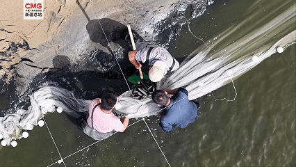 在且末縣水產(chǎn)養(yǎng)殖基地里,工人們正捕撈烏魚、沙錐魚等海產(chǎn)。當(dāng)?shù)赝ㄟ^鹽堿水還原海水技術(shù),成功實現(xiàn)沙漠海鮮養(yǎng)殖,規(guī)模達500畝以上,成活率達到96%。