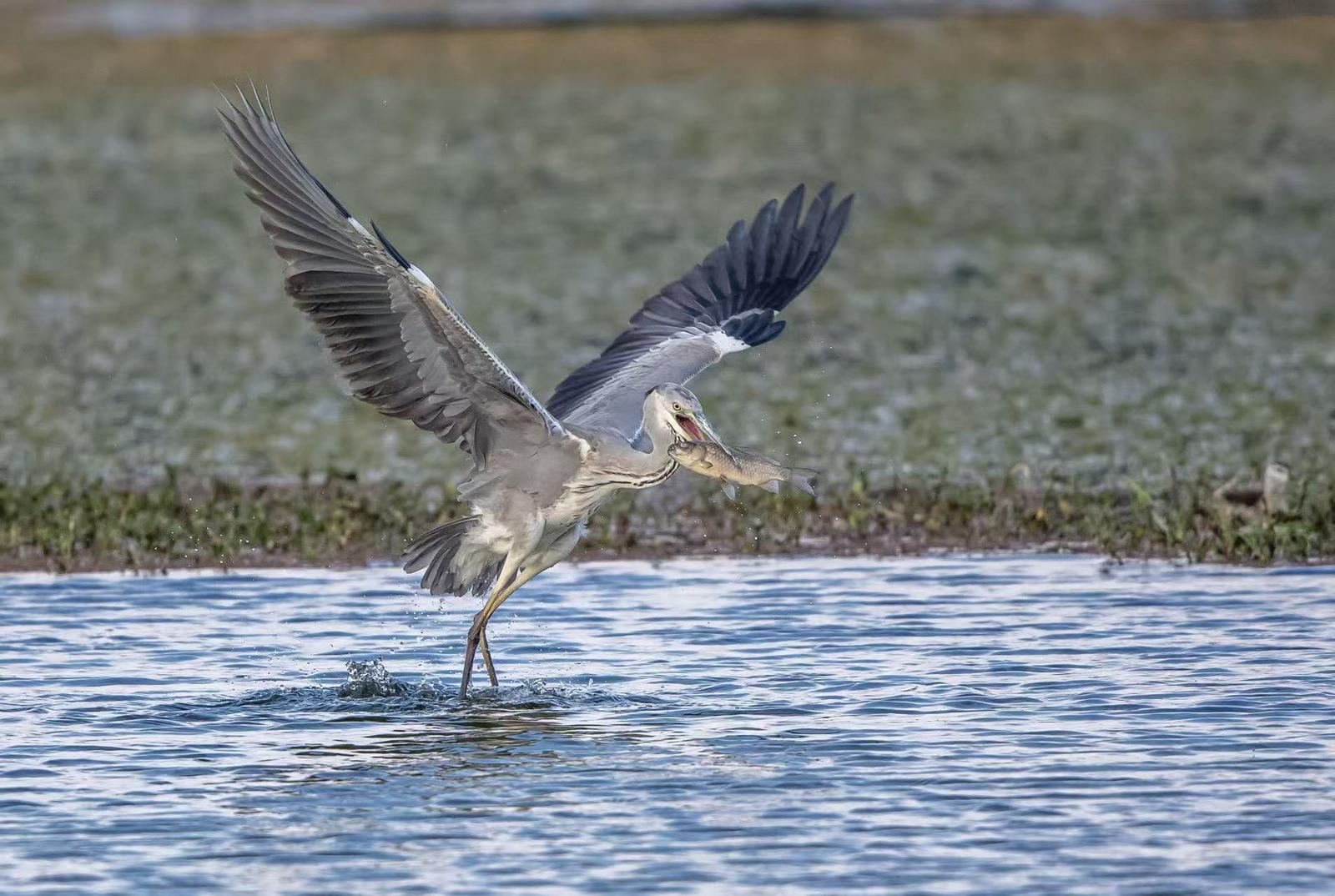 回溯至1985年,《盤(pán)龍江上水鳥(niǎo)翻飛》的報(bào)道曾讓市民驚喜:德勝橋至雙龍橋段突然飛來(lái)一群“不速之客”,行人駐足凝望,無(wú)人驚擾這份自然饋贈(zèng)。如今40年過(guò)去,當(dāng)年的“稀客”早已成了“??汀保涸诖浜珗@,黑水雞在蘆葦叢里鉆來(lái)鉆去,亞成鳥(niǎo)的灰褐色羽毛與水草融為一體,尋食時(shí)偶爾露出的紅額,是成鳥(niǎo)獨(dú)有的“身份標(biāo)識(shí)”;傍晚時(shí)分,夜鷺會(huì)抖落翅膀上的水珠,從江岸樹(shù)梢滑翔至水面,在空中劃出一道利落的弧線;白鷺最是靈動(dòng),黑嘴黃腳的模樣格外討喜,若是繁殖季,頭頂還會(huì)冒出兩根細(xì)長(zhǎng)的“發(fā)辮”,在風(fēng)中輕輕晃動(dòng);體型更大的蒼鷺則偏愛(ài)清靜,多待在盤(pán)龍江人少的河段或大觀樓草海。