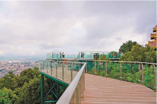 新建成的觀景長(zhǎng)廊以堅(jiān)固的鋼架結(jié)構(gòu)為主體,配以通透的玻璃圍欄,確保了視野的開(kāi)闊與游覽安全。長(zhǎng)廊總面積為1100多平方米,可同時(shí)容納近500人。長(zhǎng)廊的建成大大拓寬了游客的游覽視角,游客可以信步于長(zhǎng)廊之上,輕松地將芒市城區(qū)的壯麗景色盡收眼底,并以城市風(fēng)光為背景,與雄偉的金塔拍攝出更具層次感和故事性的照片,讓游覽勐煥大金塔的體驗(yàn)感變得更加豐富。(芒市融媒 記者曾麻干 通訊員楊波 文/圖)