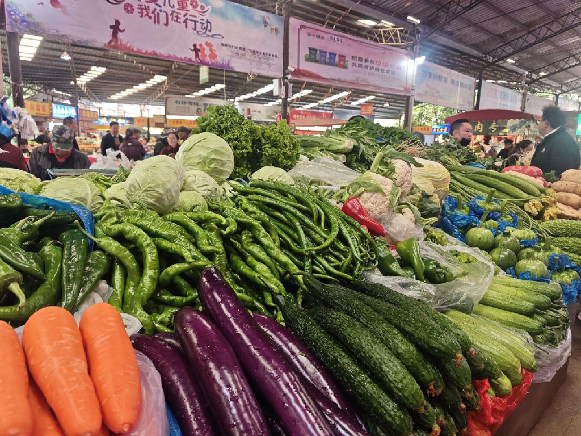 清晨的篆新農(nóng)貿(mào)市場人聲鼎沸,詢價聲、交談聲與掃碼支付提示音交織在一起,各類蔬菜整齊擺放在攤位上,吸引了眾多市民駐足挑選。