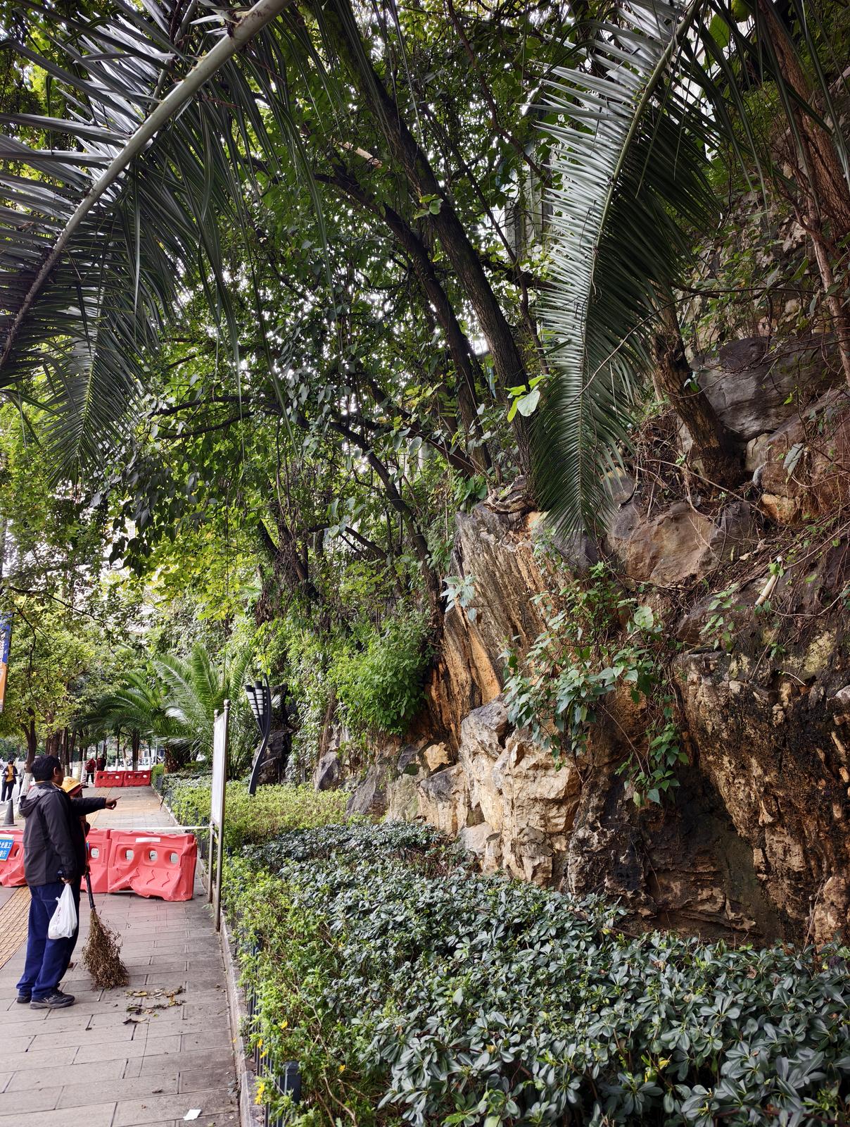 在附近路段進行清掃的工作人員介紹,4日清晨6時許,他們經(jīng)過事發(fā)路段時,尚未發(fā)現(xiàn)巖石崩落,7時清掃返回時,大片巖石已經(jīng)崩落至現(xiàn)場,幸好綠化帶內(nèi)有一棵較大的樹木阻擋了崩落巖石,石塊才沒有沖下人行道。由于事發(fā)時間較早,路上行人稀少,幸未傷人。