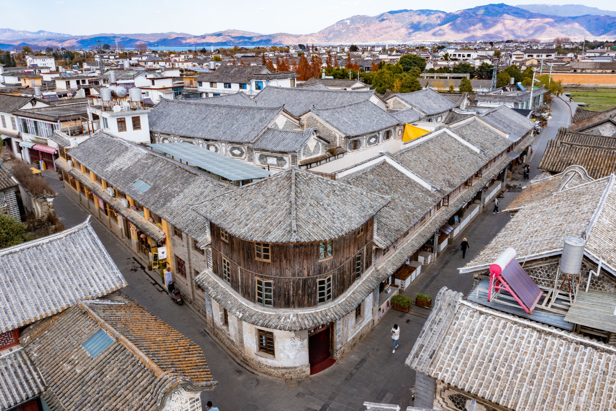 走得差不多了,我們接下來轉(zhuǎn)個(gè)場,往北邊大概20公里,就到了非常有名的喜洲古鎮(zhèn)。喜洲古鎮(zhèn)東臨洱海,西枕蒼山,非常好地保存下來了白族民居建筑群,從布局上看是典型的“三坊一照壁”以及“四合五天井”的白族庭院格局。民居雕梁畫棟、斗拱重疊、翹角飛檐,門樓、照壁、山墻的彩畫裝飾藝術(shù)絢麗多姿,體現(xiàn)了白族人民的建筑才華和藝術(shù)創(chuàng)造力。古戲臺、本主廟等歷史建筑得到修繕,白族服飾、扎染技藝等民俗活動延續(xù)至今,各地游客紛至沓來。