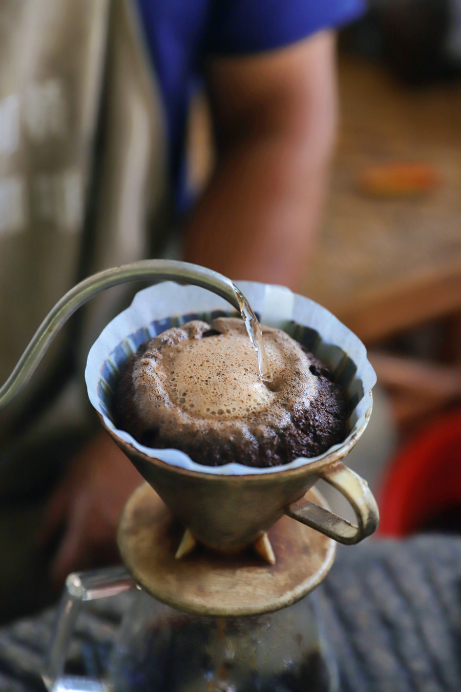 這套充滿(mǎn)原始張力的獨(dú)特技法被游客拍攝上傳至抖音,登上熱搜榜首,讓這個(gè)簡(jiǎn)易的驛站迅速成為熱門(mén)打卡地。被網(wǎng)友譽(yù)為“云南咖啡主理人”的李金合,正是在此地,憑借一杯自種、自烘、自沖的咖啡,贏得了廣泛關(guān)注。