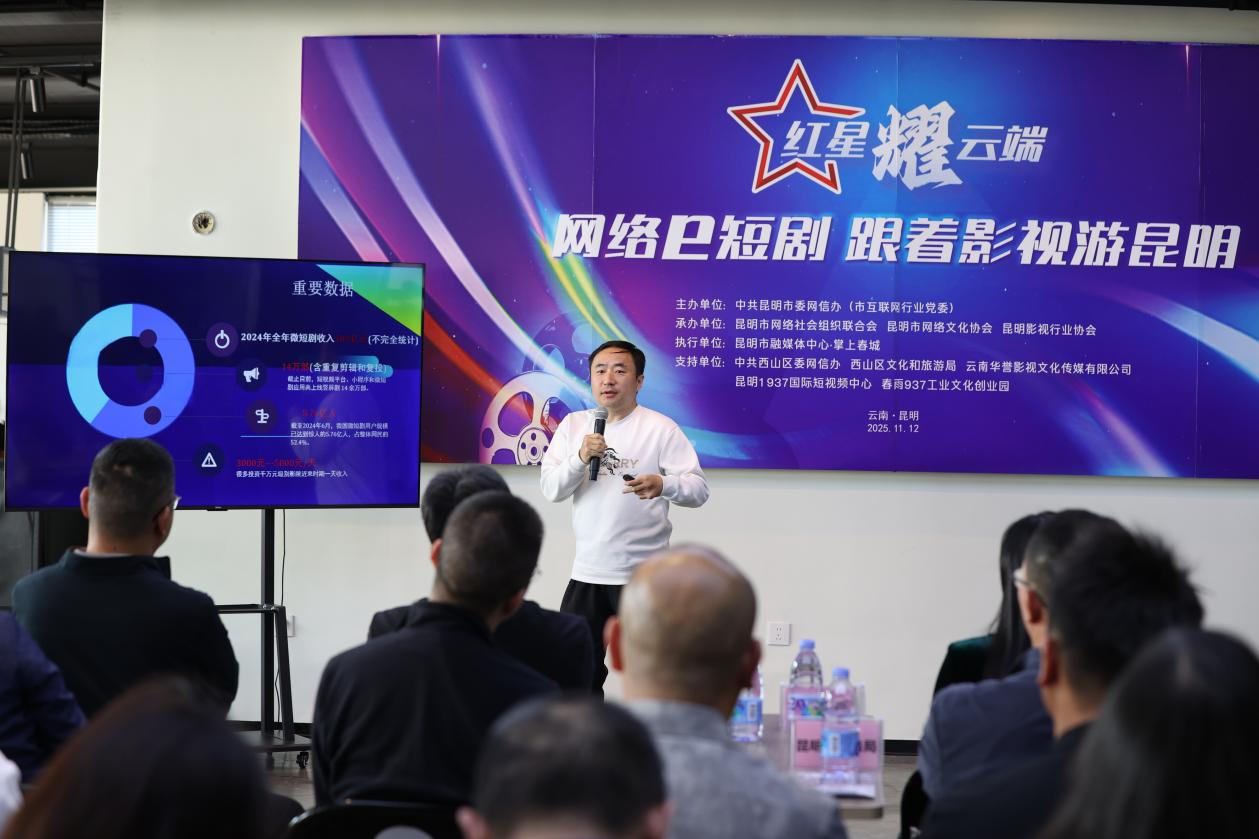 11月12日,“紅星耀云端——網(wǎng)絡(luò)e短劇 跟著影視游昆明”主題沙龍活動在昆明1937國際短視頻中心舉辦。本次活動為影視創(chuàng)作者和文旅從業(yè)者搭建了一個交流與合作的平臺,共探短劇與文旅融合發(fā)展的新路徑,推動昆明數(shù)字創(chuàng)意產(chǎn)業(yè)與文旅產(chǎn)業(yè)深度融合。