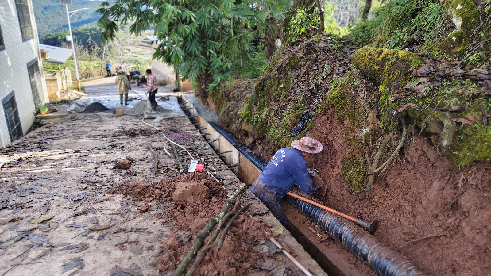 寧河村另一個小組阿梯左的村民們也是全員出動,投工投勞,正在對小組道路外側(cè)的回廊、雨污管網(wǎng)進(jìn)行升級改造。