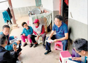 付鑫泳(右二)在群眾家中走訪。 祿勸警方供圖