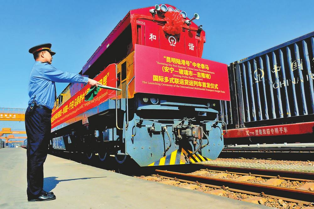 11月28日,“昆明陸港號(hào)”中老泰馬國(guó)際多式聯(lián)運(yùn)列車首發(fā)儀式在安寧桃花村貨運(yùn)站舉行,標(biāo)志著區(qū)域互聯(lián)互通與面向印度洋的國(guó)際物流大通道建設(shè)取得新進(jìn)展。