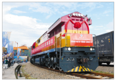 “鄭和號(hào)”海公鐵國(guó)際多式聯(lián)運(yùn)班列首發(fā)。記者劉凱達(dá)攝