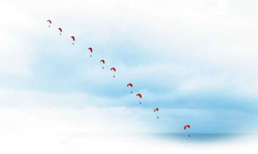 撫仙湖上空的滑翔傘表演。 通訊員 董乙澤 攝