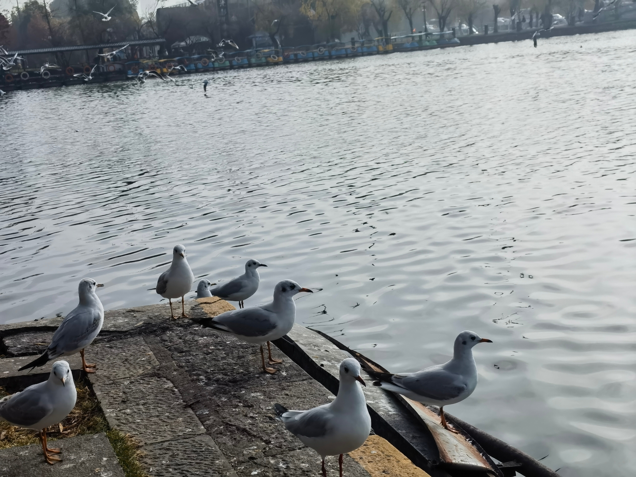 園內工作人員全員化身護鷗衛(wèi)士,每日巡邏并勸導游客文明觀鷗,及時清理鷗糞、做好消毒;一旦發(fā)現受傷鷗鳥,便第一時間實施救助。正是這些細致入微的守護,共同筑牢了紅嘴鷗在昆明的越冬安全防線。據管理員觀察,自11月底紅嘴鷗陸續(xù)飛抵公園以來,園內鷗群數量已從最初的兩三百只增至目前的1500多只。成群翩躚的鷗鳥,已成為大觀公園一道絕美的風景線。