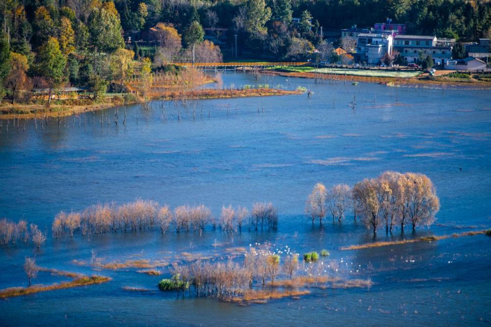 位于曲靖市會(huì)澤縣的念湖,每年11月至次年3月成為黑頸鶴的越冬天堂。清晨薄霧中,千余只黑頸鶴時(shí)而展翅掠過(guò)湖面,時(shí)而在淺灘優(yōu)雅踱步,成為當(dāng)?shù)刂匾纳锒鄻有员Wo(hù)成果的展示窗口。
