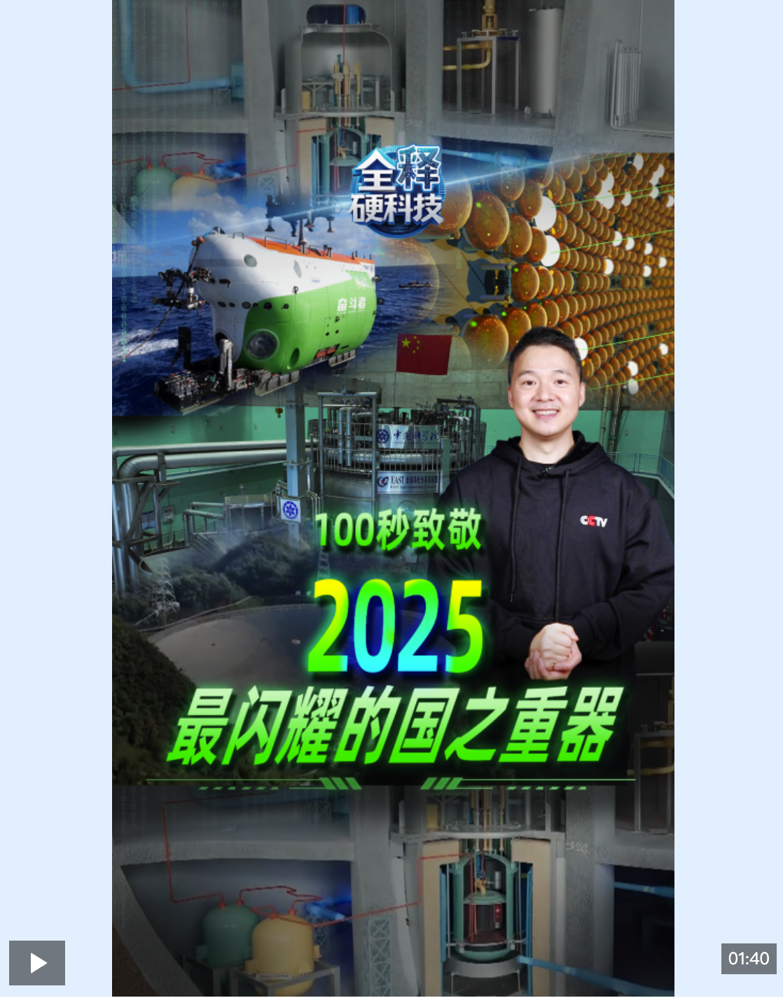 2025年,中國科技創(chuàng)新征程波瀾壯闊。全釋硬科技,我們今天就用100秒來致敬2025年那些閃耀民族智慧、照亮未來之路的國之重器。