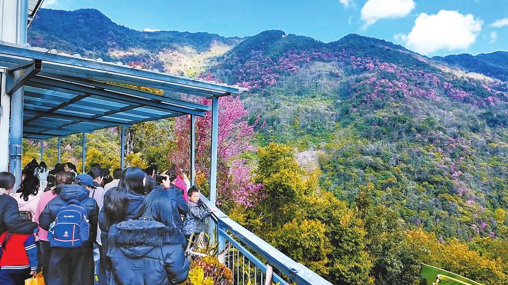 “一走進(jìn)來就被深深吸引,是親子共游的好去處?!睅е⒆忧皝碣p花的李女士笑著說道。游客楊先生也贊嘆:“櫻花漫山遍野,一層一層特別壯觀。這里空氣清新、鳥語花香,一點(diǎn)也感覺不到寒冷,好像提前迎來了春天?!?/p>