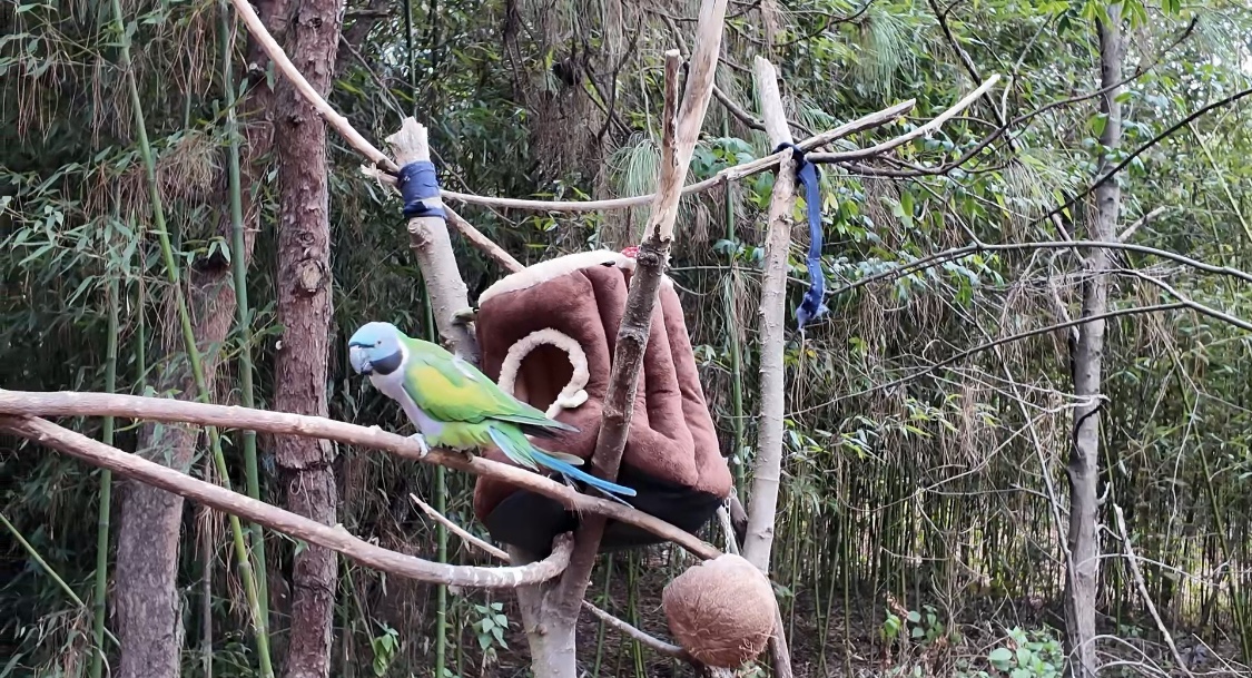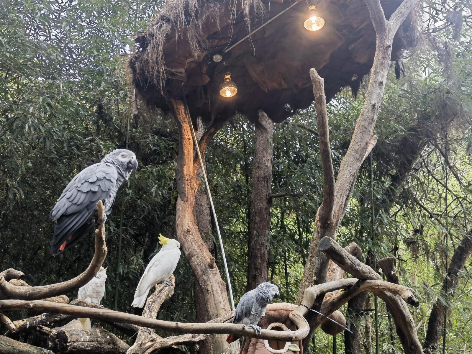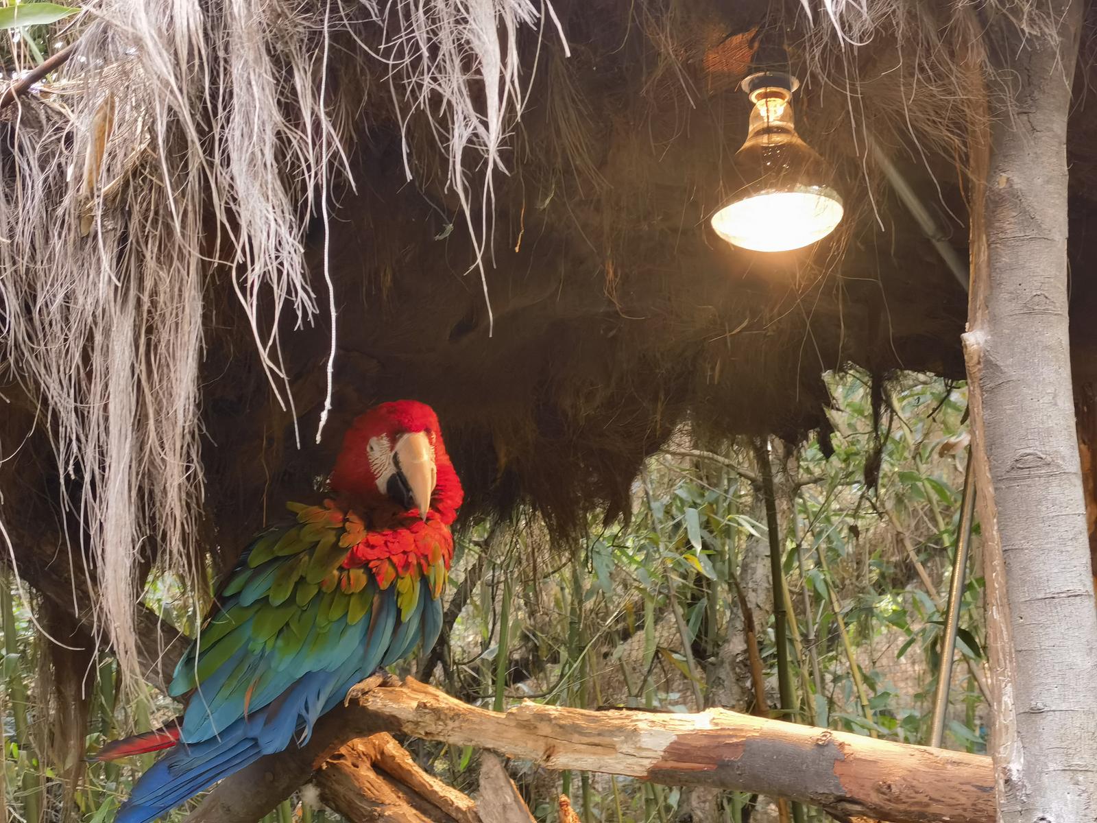 生活在熱帶、亞熱帶的鸚鵡對(duì)低溫比較敏感。園區(qū)將保溫?zé)魬覓煸跅旧戏郊s30厘米處,這樣既能避免鸚鵡羽毛被燙傷,又能維持環(huán)境溫度。同時(shí),園區(qū)還在棲木間安裝了樹洞造型的毛絨鳥窩,在保暖之余也豐富了它們的棲息場(chǎng)所。記者在現(xiàn)場(chǎng)看到,正是由于保溫?zé)舻拇嬖?,一只只鸚鵡安然待在燈下取暖,生活得十分愜意。