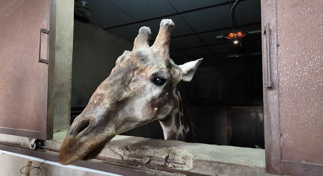 1月15日上午,記者來到云南野生動(dòng)物園長(zhǎng)頸鹿館。這里的長(zhǎng)頸鹿都來自非洲,難以適應(yīng)昆明冬天的寒冷。但在館舍內(nèi),記者看到屋頂亮著一盞保溫?zé)?,地上鋪著厚厚的稻草。一頭長(zhǎng)頸鹿正在館內(nèi)休息,見到眾人前來,它顯得有些緊張。動(dòng)物園工作人員介紹說:“長(zhǎng)頸鹿原產(chǎn)于非洲,比較怕冷,所以我們?yōu)樗鼈儼惭b了恒溫設(shè)備,保證室內(nèi)溫度在25℃左右。鋪設(shè)厚稻草則是為了防止長(zhǎng)頸鹿四肢直接接觸冰冷的地面。這樣它們就能舒適生活了?!?/p>