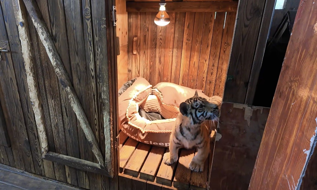 小老虎的保溫?zé)舯话惭b在睡墊上方,再配合一些豐容玩具,為它們打造出暖烘烘的“專屬小窩”?!八唷钡膱?chǎng)館也安裝了恒溫保暖裝置。它們平時(shí)從水中上岸后,可以進(jìn)入室內(nèi),保暖裝置能幫助它們快速晾干毛發(fā),并提供溫暖的環(huán)境。