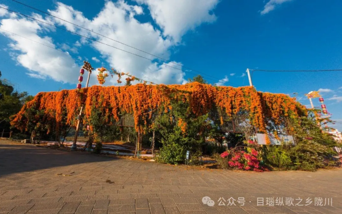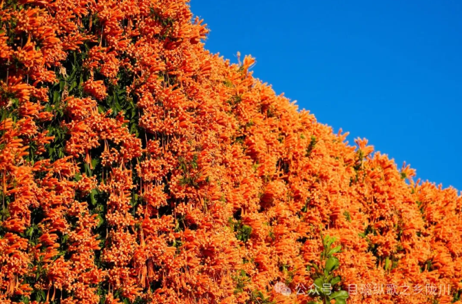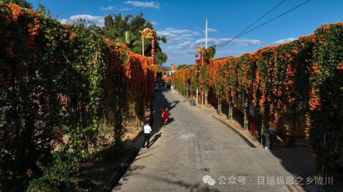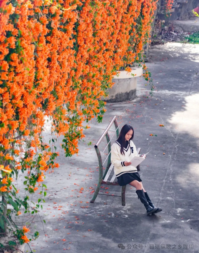 這里最適合拍遠(yuǎn)景大片!站在道路中間,讓漫天繁花作為背景,張開雙臂就能拍出被花海環(huán)繞的震撼感;無人機升空拍攝,還能捕捉到花瀑與鄉(xiāng)間道路交織的絕美畫面。微風(fēng)吹過,花枝輕搖,橙紅的花浪隨風(fēng)涌動,仿佛在訴說著隴川冬日的生機與熱烈,隨手發(fā)朋友圈都能收獲滿屏點贊!