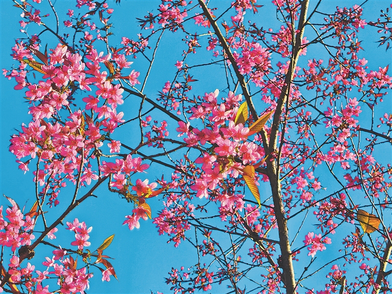 寒冬時(shí)節(jié),盈江縣盞西鎮(zhèn)的群山之間,一曲粉色浪漫序曲悄然奏響:駕車沿山路盤旋而上,漫山遍野的櫻花撲面而來,如霞似霧,將蒼翠山巒暈染成一片溫柔而磅礴的花海。