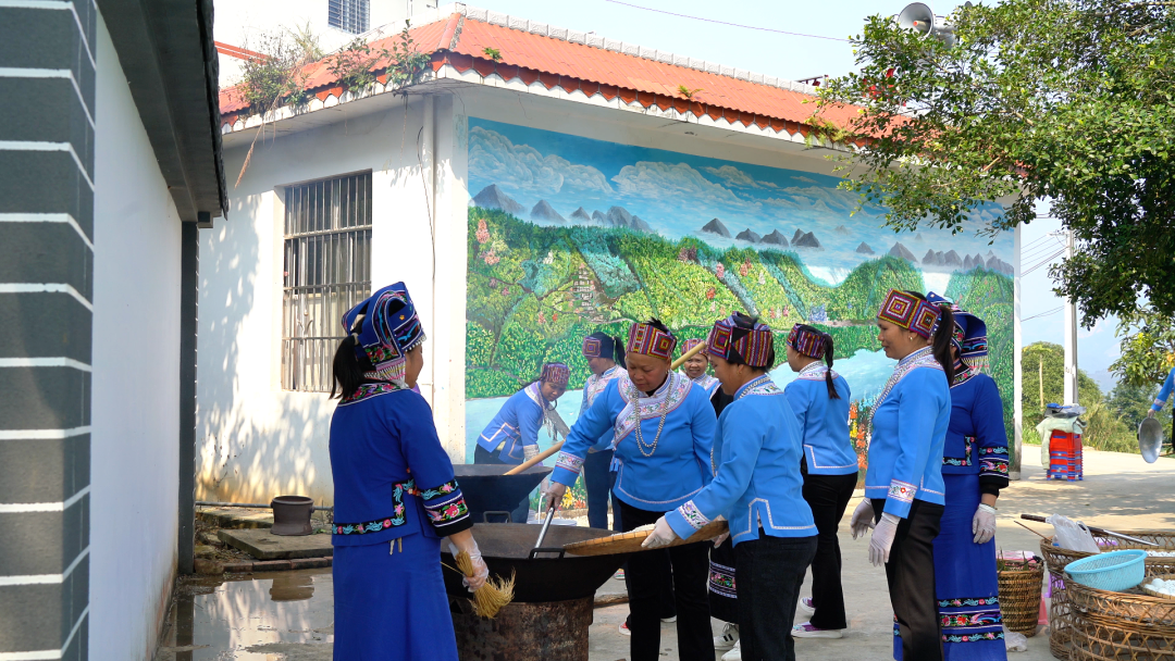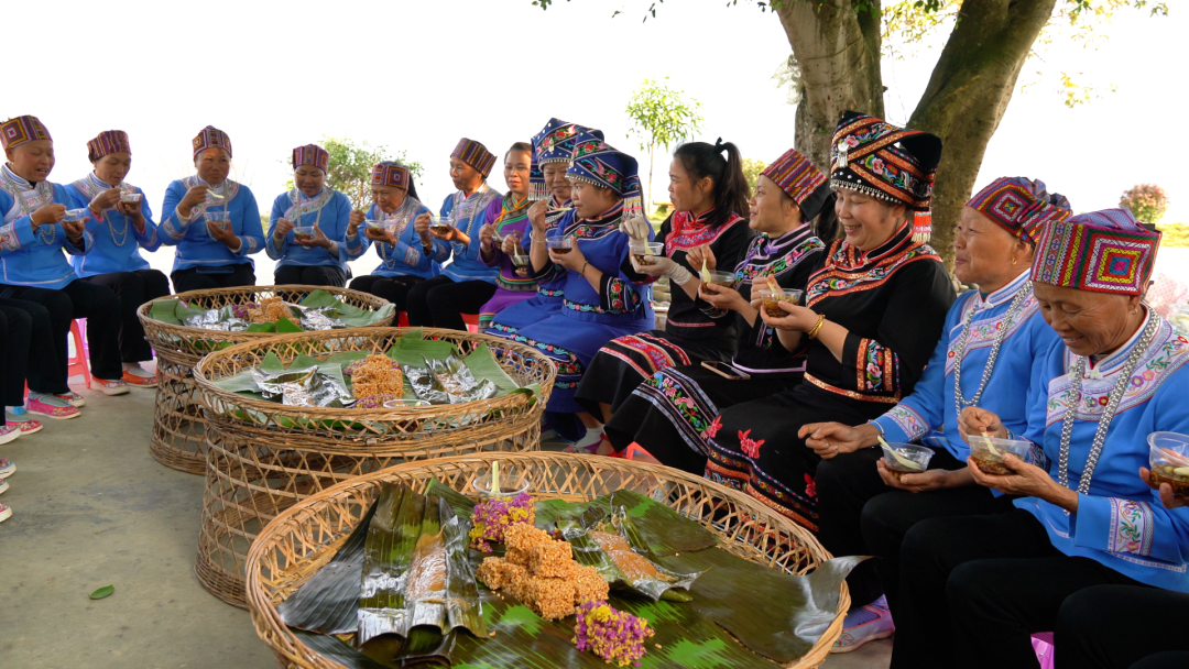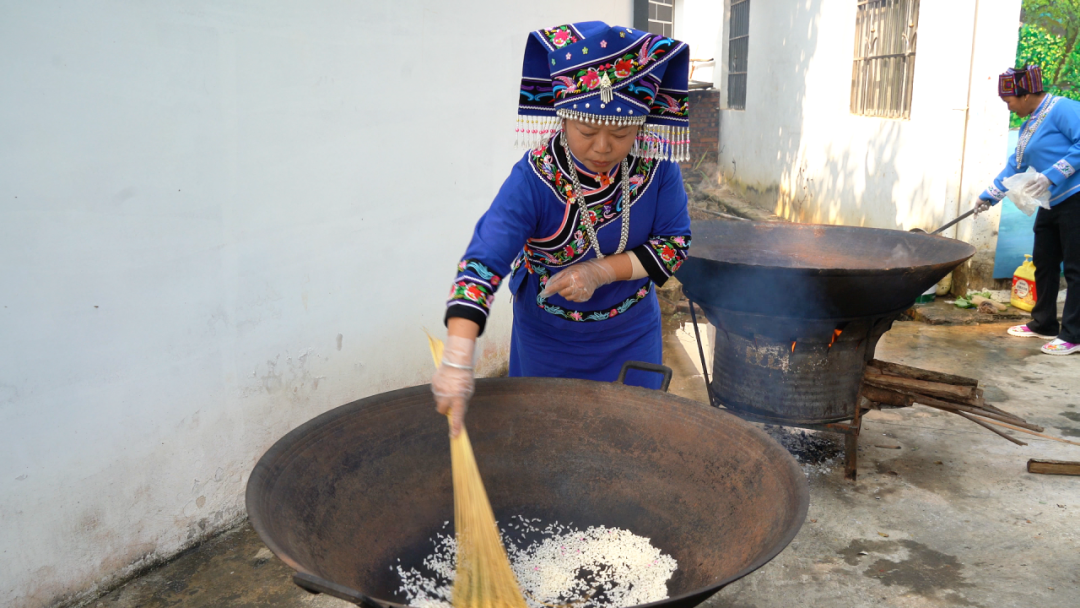 美食上桌,婦女們圍坐成圈,手中捧著剛做好的米花,耳畔響起悠揚(yáng)婉轉(zhuǎn)的山歌。清甜的米香混合著醇厚的蔗香在口中化開,歌聲里是對豐收的喜悅、是對新年的期盼?!懊磕赀^年都要做米花,這是刻在骨子里的年味。紅糖甜,生活更甜!”一位村民笑著說道。