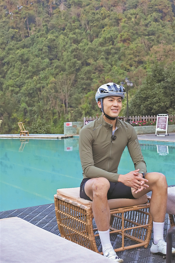 在《偷偷藏不住》中,盧東旭飾演陽光開朗的體育生江銘,球場上的活力身影給觀眾留下深刻印象;而現(xiàn)實里的他,同樣熱愛運動,對騎行更是情有獨鐘?!暗谝淮蝸淼潞辏且驗槠卟试颇细裉m芬多自行車節(jié),就被這里狠狠圈粉了!”回憶起與德宏的初遇,他仍難掩興奮。