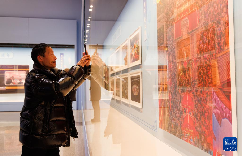 ?1月26日,在中國非物質(zhì)文化遺產(chǎn)館舉行的展覽現(xiàn)場,觀眾用手機拍攝展覽作品。