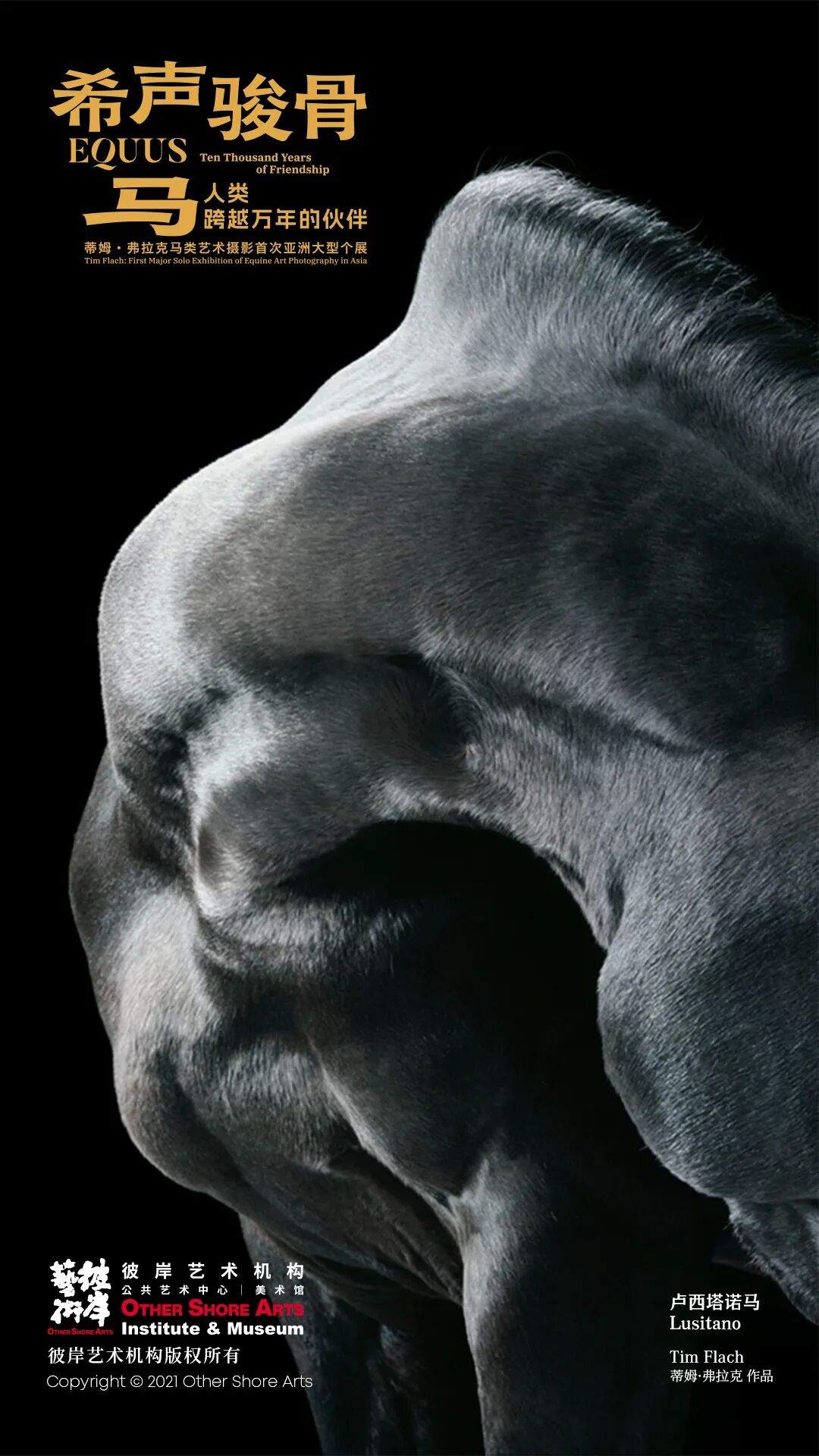 本次展覽由彼岸藝術機構(gòu)與美術館主辦,策展人林曉東策劃呈現(xiàn),展出當代全球最具影響力的動物攝影藝術家之一——英國攝影師蒂姆·弗拉克(Tim Flach)以“馬”為主題的重要代表作品。