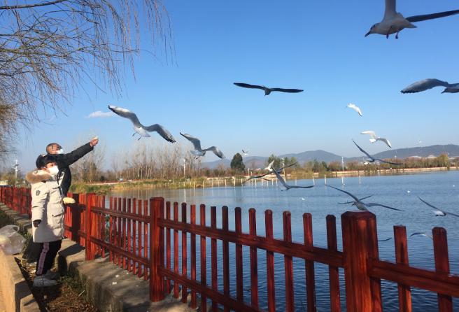 杞麓南岸人鷗同樂。云南日報通訊員朱雁飛/攝