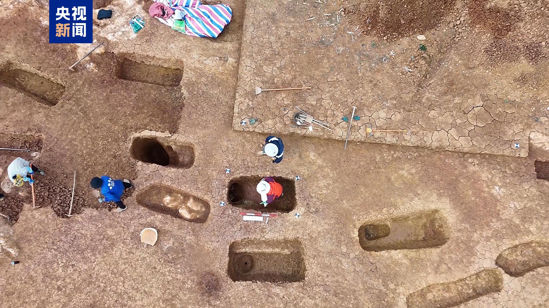 2025年10月,經(jīng)國家文物局批準(zhǔn),由紅河州文物管理所聯(lián)合云南省文物考古研究所、武漢大學(xué)歷史學(xué)院、彌勒市文物管理所等單位組成聯(lián)合考古隊(duì),對墓地展開了搶救性發(fā)掘,兩個多月的系統(tǒng)發(fā)掘,本階段共清理各類遺跡61處,其中房子一座,用火遺跡一處,灰坑9座,土坑墓50座,出土各類器物321件(套),質(zhì)地有陶器、青銅器、銅器和制器、鐵器、玉石器等。