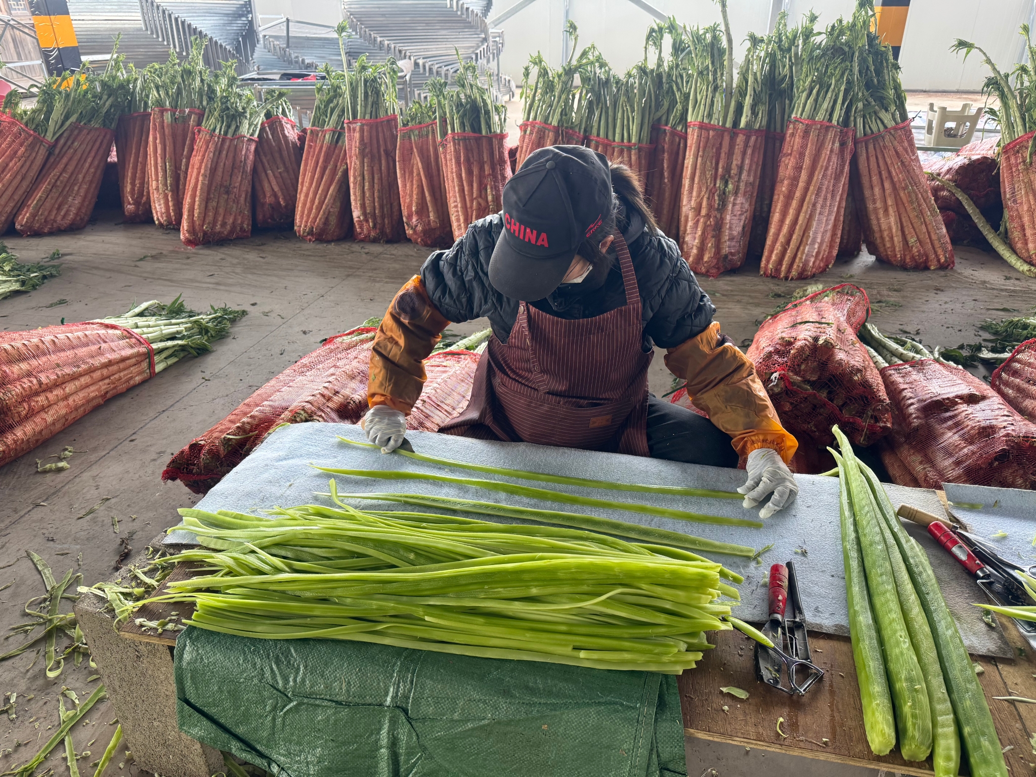 北城街道王棋社區(qū)的烤房內(nèi),香氣撲鼻而來,新鮮貢菜經(jīng)過削皮、打條后,被有序送入烤房恒溫烘烤。依托閑置烤房資源,玉溪年有余農(nóng)業(yè)科技發(fā)展有限公司開展貢菜烘干業(yè)務(wù),通過不斷試驗(yàn)改進(jìn)烘干工藝、調(diào)試爐內(nèi)風(fēng)的變向與變量,今年已實(shí)現(xiàn)穩(wěn)定量產(chǎn)?!皞鹘y(tǒng)晾曬風(fēng)干需兩到三天,通過空氣能熱泵電烤房12個小時就能出一爐,并且在整個生產(chǎn)環(huán)節(jié)能做到隔絕灰塵、細(xì)菌和有害雜質(zhì)。空氣能熱泵電烤房平均一天能出500到600公斤干貨,今年預(yù)計能交付100噸干貨訂單。按照每公斤70元到100元的市場價,平均每一爐產(chǎn)值在2到3萬元不等?!惫究偨?jīng)理王俊卜介紹,烤房轉(zhuǎn)型不僅提升了農(nóng)產(chǎn)品附加值,還帶動了周邊村民就近就業(yè)。公司優(yōu)先聘用紅塔區(qū)周邊村民,教會他們削皮、打條等技術(shù),讓村民實(shí)現(xiàn)家門口增收。
