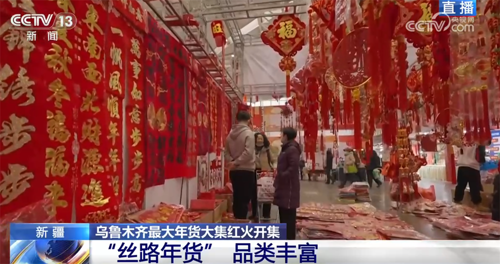 當(dāng)然,烏魯木齊這個(gè)年貨大集里,紅燈籠、春聯(lián)、非遺集市等承載中華傳統(tǒng)節(jié)慶氛圍的元素也必不可少。這兩天,從每一位進(jìn)入大集采購年貨的人們臉上,我們都看到了對春節(jié)團(tuán)圓的滿滿期待。