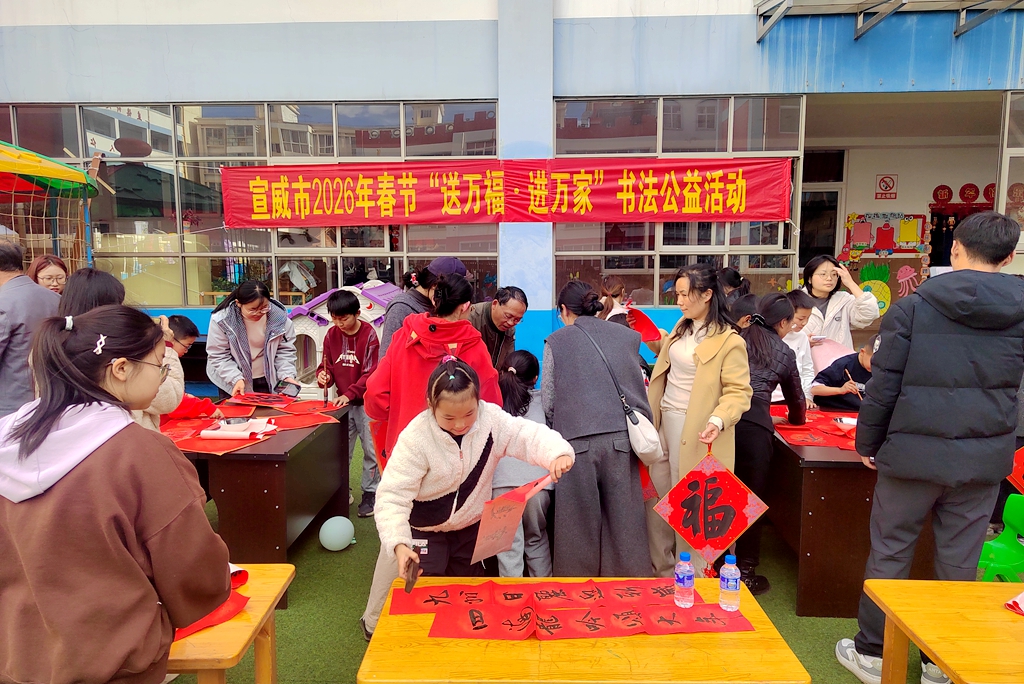 紅燈籠與福字點綴的活動現(xiàn)場暖意融融,參與家庭有序簽到,暖場環(huán)節(jié)點燃氣氛。《過河》旋律中,“搖啊搖”游戲讓家長們與孩子默契配合,“桃花朵朵開”讓他們在互動中消融陌生感,云南特色“打跳”環(huán)節(jié),全場手拉手共舞,讓獨自打拼的從業(yè)者們感受集體溫暖。隨后的親子手工環(huán)節(jié)溫情上線,宣威書法家協(xié)會會員專業(yè)指導下,家長與孩子共同執(zhí)筆,蘸墨揮毫書寫春聯(lián)與福字,墨香間滿是新春祝福與親子溫情。親子游戲環(huán)節(jié)將活動推向高潮,“福字傳遞”“泡沫棒對決”“放鞭炮”等游戲,讓他們卸下工作壓力,重溫童年樂趣,親子默契在歡笑中升溫?;顒游猜暎鬓k方貼心準備的筆袋、書包等實用獎品,以及“最佳默契親子獎”“年味傳承小達人”等榮譽,承載著滿滿關懷。合影留念的鏡頭定格下一張張幸福的笑臉。家長代表紛紛感言,感謝活動讓他們擁有高質(zhì)量親子時光?,F(xiàn)場還收集了家長們的意見與建議,為后續(xù)精準對接新就業(yè)群體需求、優(yōu)化服務提供了重要參考。