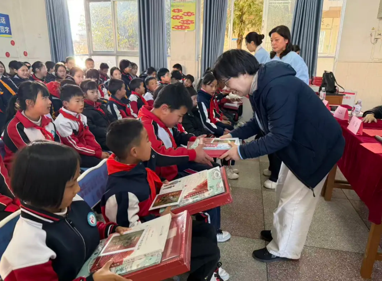 活動(dòng)中,田林第三中學(xué)校長李慧清闡述了學(xué)校倡導(dǎo)的“行走的閱讀”教育理念,認(rèn)為真正的教育應(yīng)引領(lǐng)學(xué)生走向廣闊的天地,在真實(shí)的場(chǎng)景與社會(huì)實(shí)踐中獲取真知。此次云南之行,正是希望同學(xué)們能在麗江的壯麗山水與多彩民族文化中,讀懂“社會(huì)這本鮮活的大書”。李校長詳細(xì)介紹了田林三中與上海徐家匯書院及公益組織攜手打造的“和田閱”閱讀品牌,強(qiáng)調(diào)閱讀是匯聚社會(huì)愛心、促進(jìn)共同成長的重要平臺(tái)?;顒?dòng)中,她代表學(xué)校向兩所學(xué)校捐贈(zèng)了精心挑選的《聽館長講錢學(xué)森故事》和《第一次去圖書館》,勉勵(lì)同學(xué)們從科學(xué)家的事跡中汲取愛國情懷與探索精神,并贈(zèng)送了“馬到成功”藏書票,寓意兩校情誼綿長,教育事業(yè)蒸蒸日上。