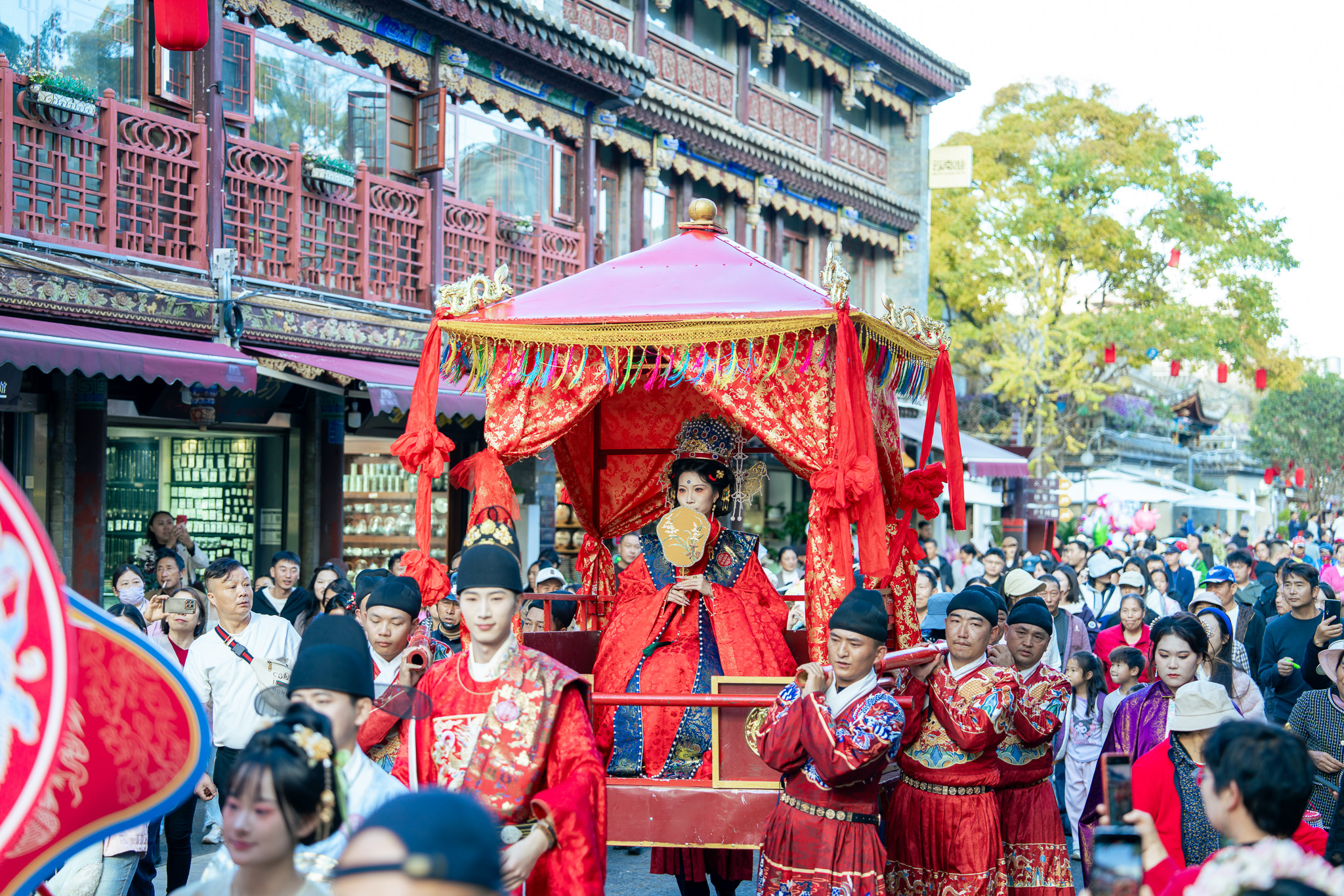 在九子方中醫(yī)館門口的副舞臺(tái),正月初一至初四將有漢服演繹、古風(fēng)樂坊與活力樂隊(duì)輪番登場(chǎng)。傳統(tǒng)音律與現(xiàn)代節(jié)拍在古鎮(zhèn)檐角下熱烈相擁,展示出傳統(tǒng)與時(shí)尚交織的新春魅力。