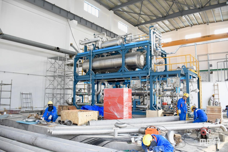 福建省綠氫中試基地廠房內(nèi)工人正在組裝設備(央廣網(wǎng)記者 ?張子劍 ?攝)