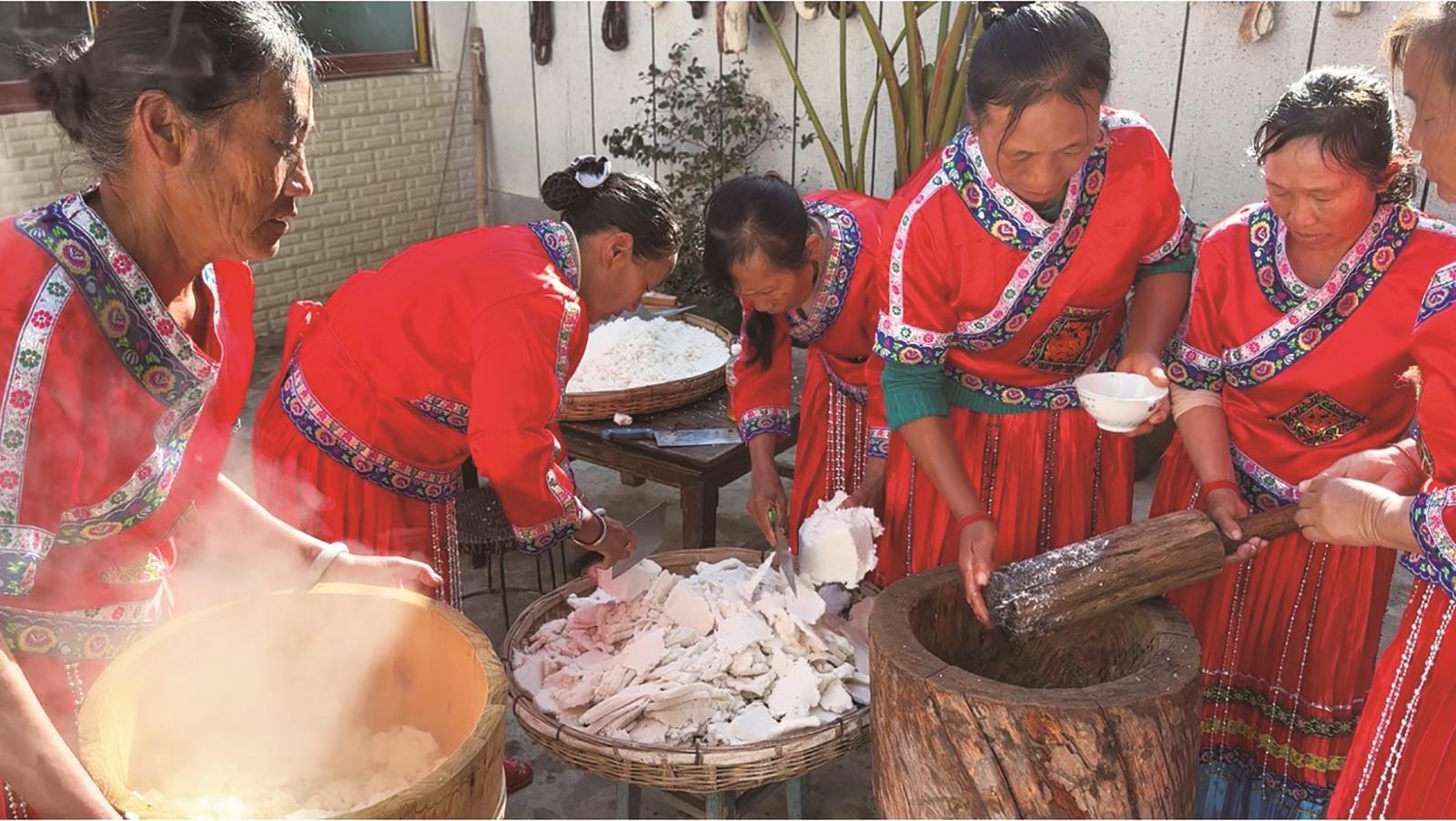 臨近年關(guān),鳳慶縣村寨里,杵臼相撞的“咚咚”聲便在街坊間悠悠響起,混著醇厚的米香,揉進(jìn)了冬日的暖陽(yáng)里。