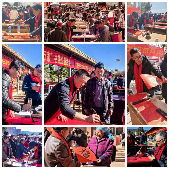 “金馬獻(xiàn)瑞千家樂(lè),春風(fēng)送暖百業(yè)興?!?月29日至2月12日,宣威市2026年春節(jié)“送萬(wàn)?!みM(jìn)萬(wàn)家”書法公益活動(dòng)在全市城鄉(xiāng)火熱開(kāi)展。15天時(shí)間,18場(chǎng)活動(dòng),70余名書法家與文化志愿者走進(jìn)村落、社區(qū)、集市、廣場(chǎng)及學(xué)校、單位,以筆墨為媒,將紅紅的春聯(lián)、“?!弊只餍麓鹤8?,送入尋常百姓家。