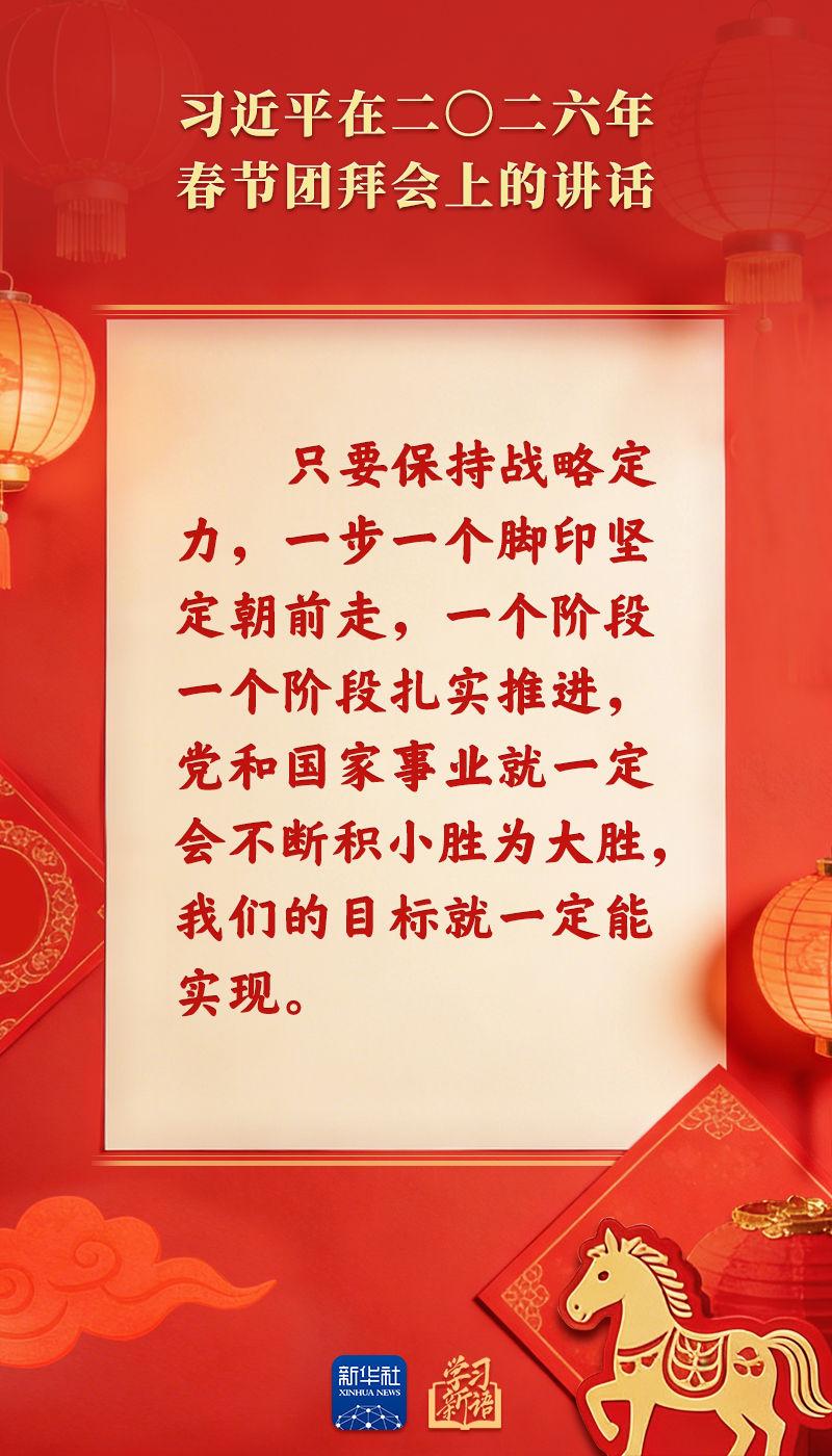辭舊歲,賀新春。中共中央、國(guó)務(wù)院14日上午在人民大會(huì)堂舉行2026年春節(jié)團(tuán)拜會(huì)。習(xí)近平總書記發(fā)表講話,代表黨中央和國(guó)務(wù)院,向全國(guó)各族人民,向香港特別行政區(qū)同胞、澳門特別行政區(qū)同胞、臺(tái)灣同胞和海外僑胞拜年。