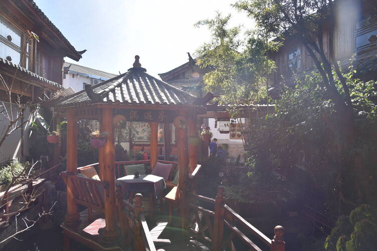 周家大院是麗江古城典型的納西傳統(tǒng)民居,一進兩院的規(guī)整格局,歷經百年依舊風骨猶存。厚重溫潤的青石板踏步石,被幾代人的腳步磨得光滑;雕刻繁復精美的六合門,紋樣間藏著納西工匠的巧思;高挑舒展的檐、院內蔥郁的老樹,無一不在訴說著這座老宅的深厚底蘊。如今院落雖經改造,添上了現代客棧的陳設,卻依舊保留著納西民居獨有的莊重與雅致,一腳踏入,便能感受到時光沉淀下來的厚重氣息。