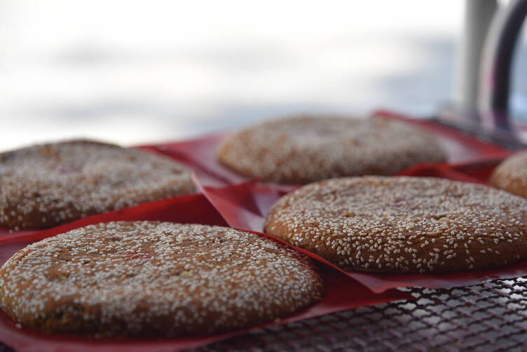 周習玲鋪子里剛剛出爐的手工納西紅餅(2025年12月20日攝)