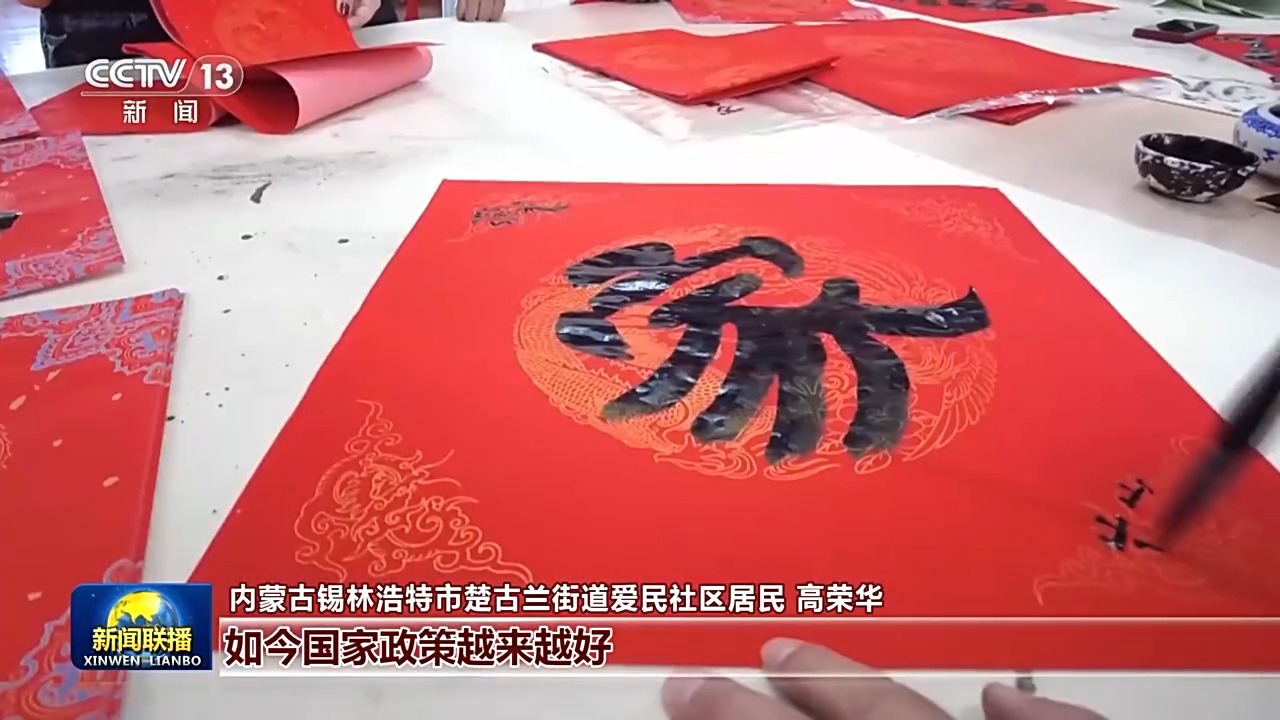 春節(jié)臨近,位于遼寧沈陽的長安小區(qū)十分熱鬧。社區(qū)的舞蹈隊正忙著排練節(jié)目,為新春表演做準備。書法愛好者現(xiàn)場揮毫潑墨,將祝福寫進一副副春聯(lián)中。