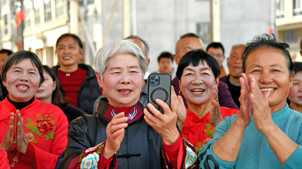 ↑ 2月15日,村民在浙江省臺州市仙居縣下各鎮(zhèn)溪上村觀看“村晚”表演。新華社發(fā)(王華斌攝)