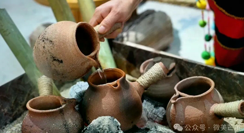 春節(jié)團(tuán)聚,怎能少了一杯暖茶?在德昂酸茶體驗(yàn)區(qū),和趙素蓮一起圍坐火塘,用陶罐、竹筒等傳統(tǒng)方式煮泡酸茶,體驗(yàn)德昂族的火塘文化,品德昂族人世代傳承的制茶智慧。