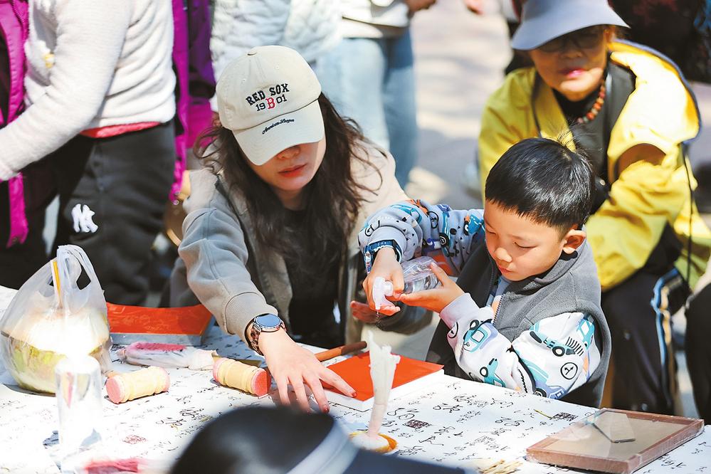 大年初二,游客在昆明金殿廟會上體驗(yàn)非遺技藝。本報記者 陳飛 攝