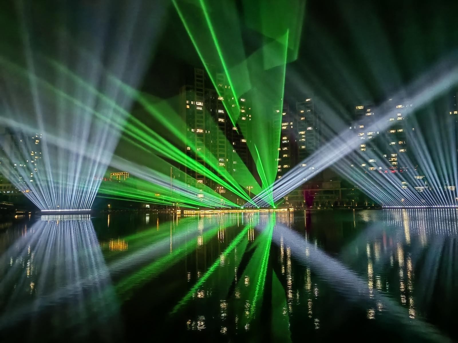夜色漸濃,燈光秀開啟視覺盛宴。400臺光束燈與16臺激光燈劃破夜空,伴隨著古典與現(xiàn)代交融的音樂,變幻出五彩斑斕的光影圖案,將公園的水面、亭臺與夜空裝點得如夢如幻。光影流轉(zhuǎn)間,濃濃的“馬年”元素與新春祝福交織其中,引得現(xiàn)場市民陣陣驚嘆。