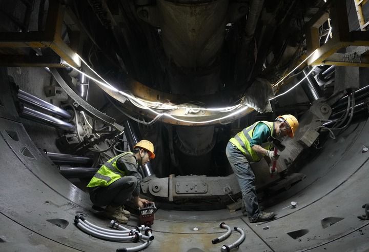 中鐵十八局集團(tuán)工人在石家莊市地鐵5號(hào)線一期工程01工區(qū)建設(shè)工地施工(2025年10月24日攝)。新華社記者 楊世堯 攝