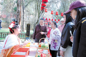 金殿景區(qū)內,市民和游客駐足新春市集。記者楊艷輝攝