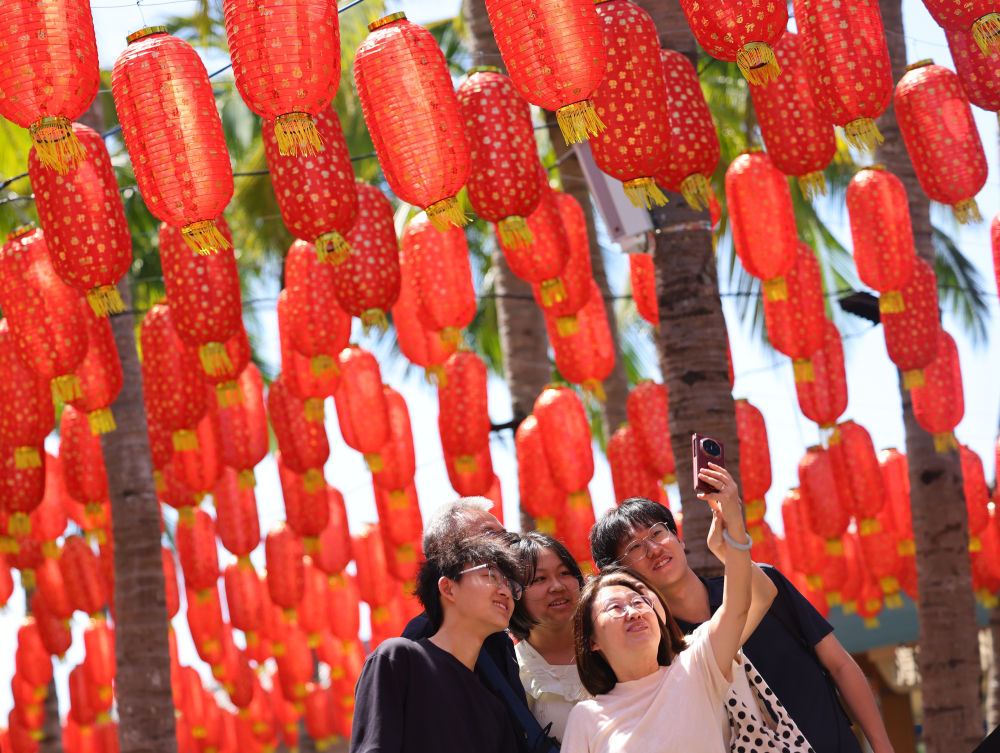 2月16日,游客在海南三亞南山文化旅游區(qū)游覽。新華社發(fā)(陳文武 攝)