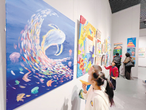 看畫展。記者蔡曉磊攝