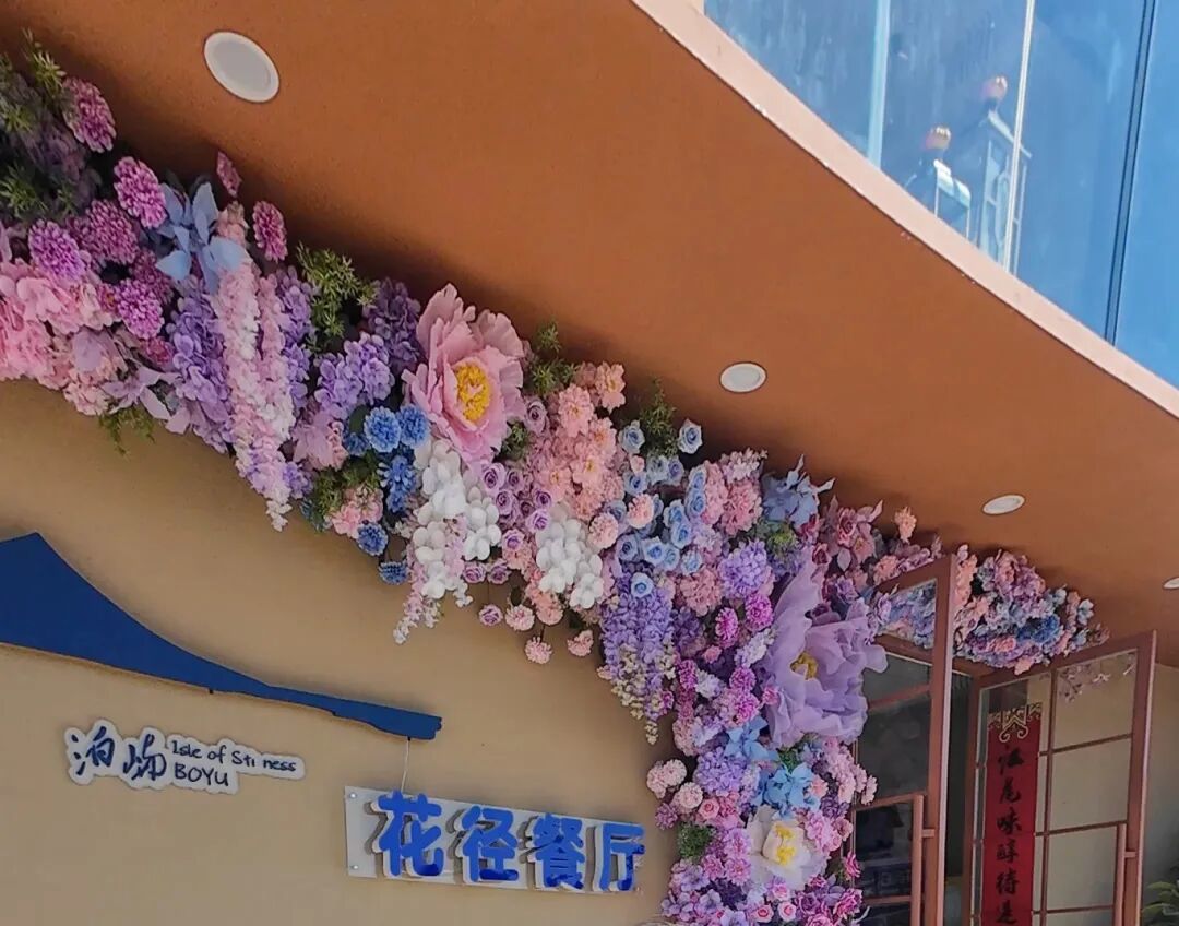 騎行間隙,休憩打卡氛圍感拉滿。江尾暢騎俱樂(lè)部?jī)?nèi)謝謝你咖啡正常營(yíng)業(yè),醇厚手沖搭配現(xiàn)烤菠蘿包,是歇腳充電的絕佳選擇。網(wǎng)紅打卡地泊嶼花徑餐廳花藝造景精致,巨型BOBO兔裝置顏值出眾,落地窗直面滇池美景,出片率極高。餐廳已于正月初四恢復(fù)正常營(yíng)業(yè),到訪游客可安心進(jìn)店用餐、拍照休憩。